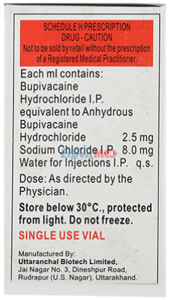 Anawin 0.25% Injection is a local anesthetic containing the active constituent bupivacaine hydrochloride. It is used to numb the parts of the body to stop pain from happening or provide pain relief. It can be used during surgery and childbirth. You need to inform your physician if you have heart problems, brain disorders, severe headache, anemia, infections, tumour, or have had a recent trauma before the treatment.
