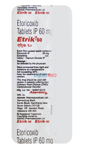Etozox 60mg Tablet is a pain-relieving medicine. It is used for relieving moderate pain and swelling of joints associated with different forms of gout and arthritis. It is also used for short-term treatment of moderate pain after dental surgery in people 16 years of age and older.
