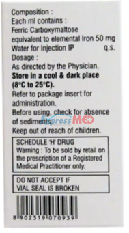 Orofer 500mg Injection contains the active constituent Ferric Carboxymaltose where iron is the primary component. Medicines that contain iron are used in a condition called iron deficiency anemia, when you do not have enough iron in your body. This injection is used to treat iron deficiency when oral iron is not effective or tolerated; or when your doctor decides you need iron very quickly to build up your iron stores.