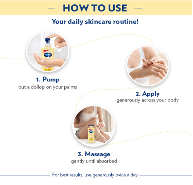 Vaseline Intensive Care Body Deep Moisture Lotion is designed to penetrate the outermost layer of the skin to help heal dry skin for long periods, not just to provide temporary, superficial relief. Its deeply moisturizing formula provides effective, long-lasting moisturization. It has a smart pump that unlocks with just a 90˚ turn. With quick-lock technology, the pump locks in the raised position after a quarter turn, for easier use and no mess.